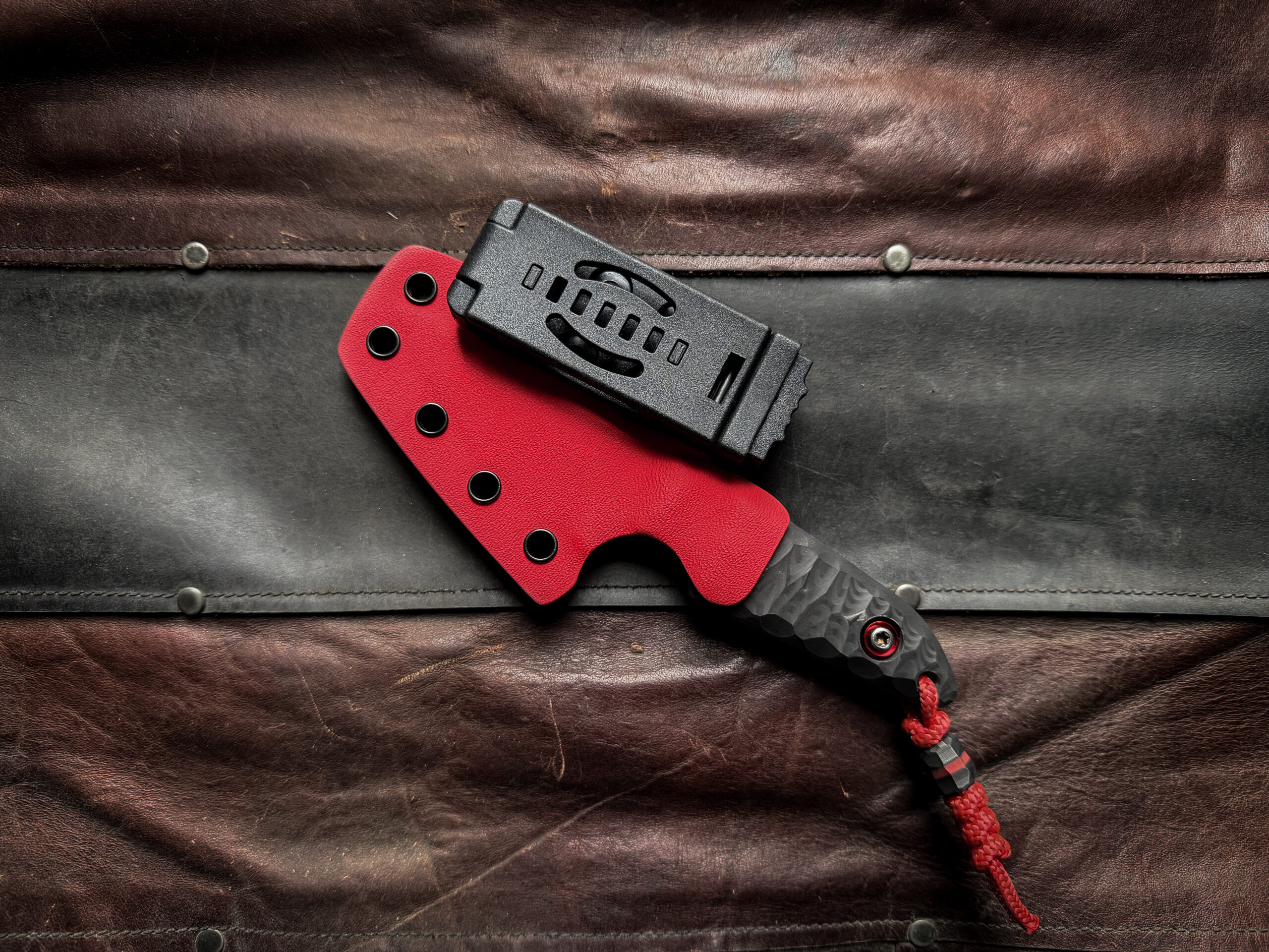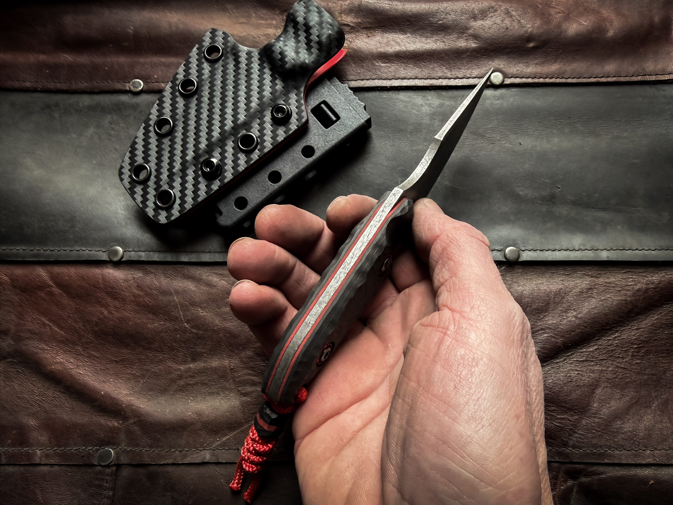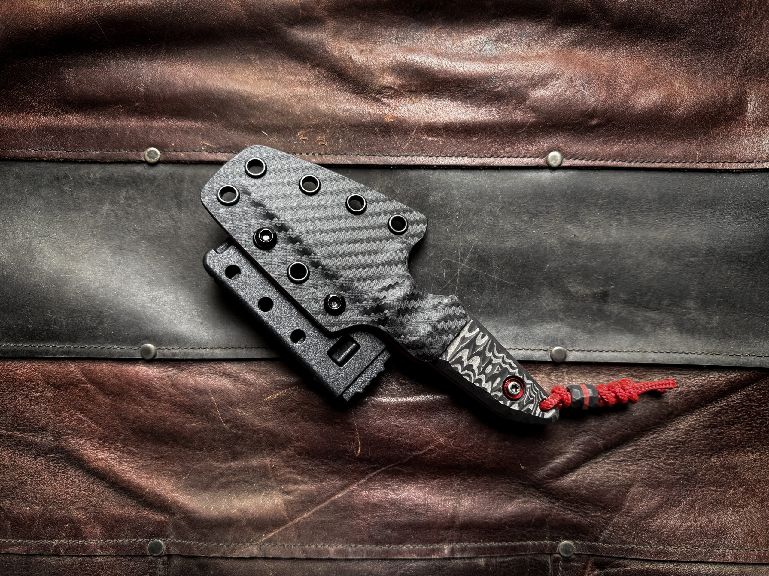 Two tone Kydex sheath (Red/Carbon) , TekLok, vertical or horizontal carry