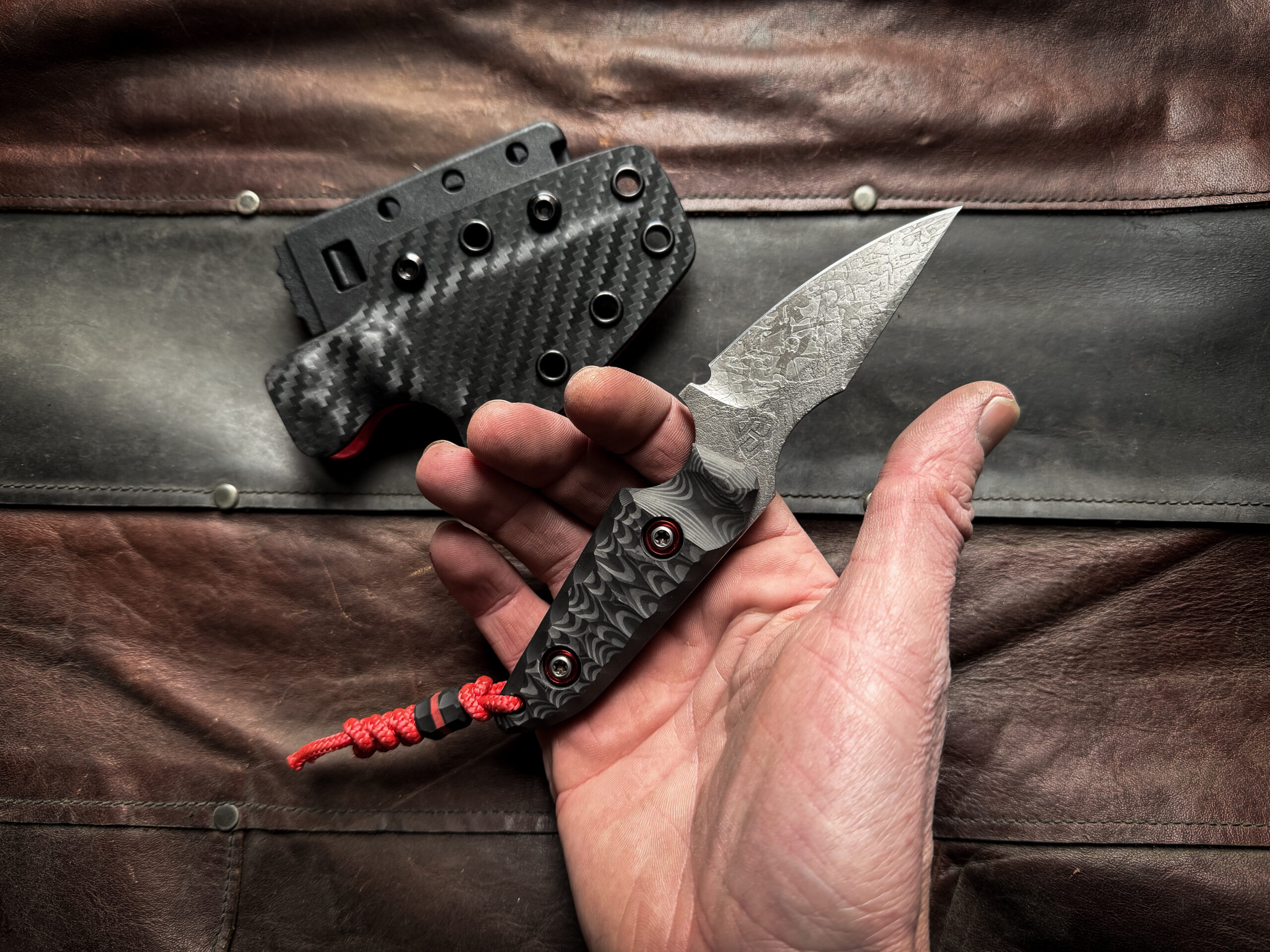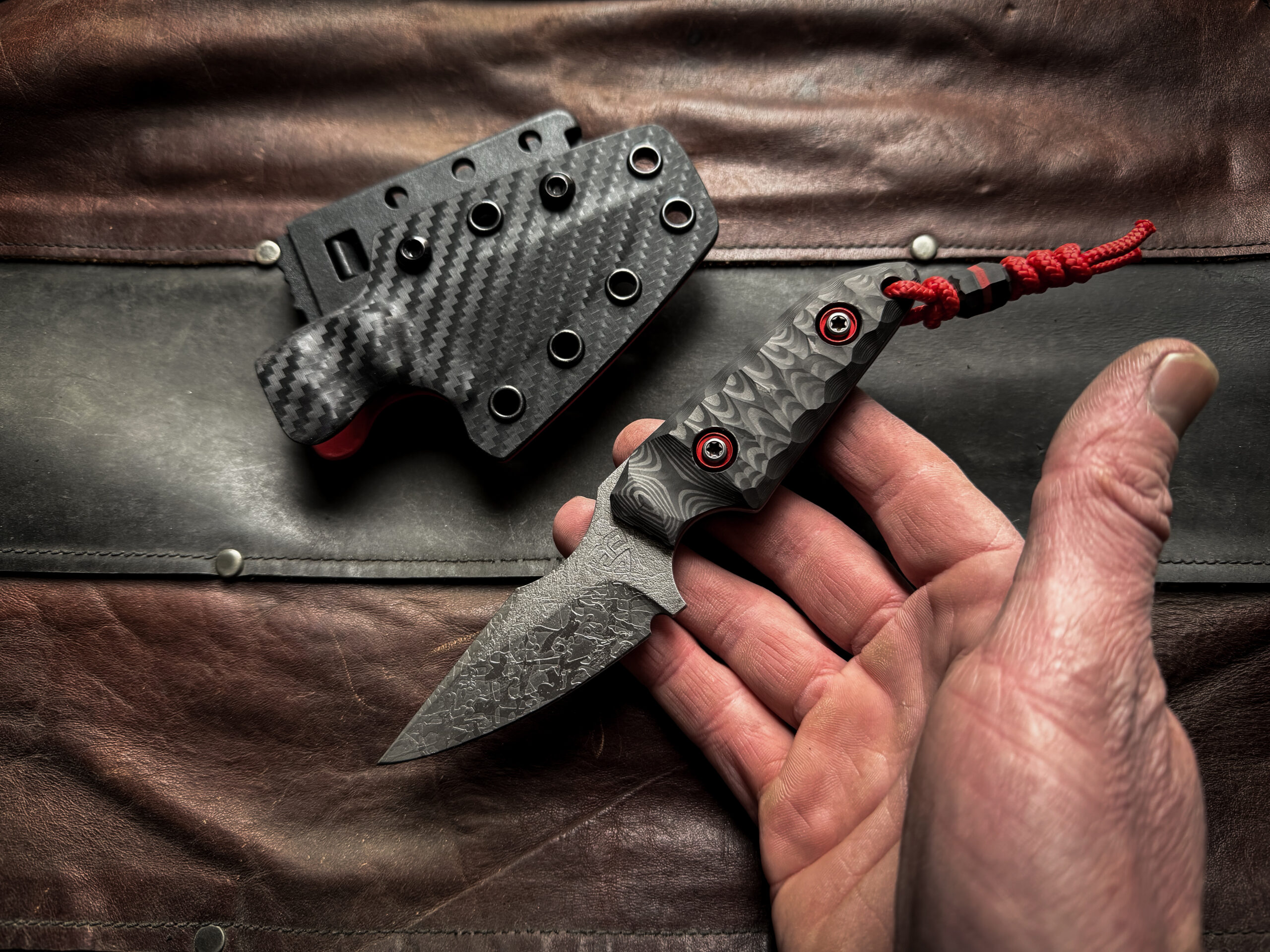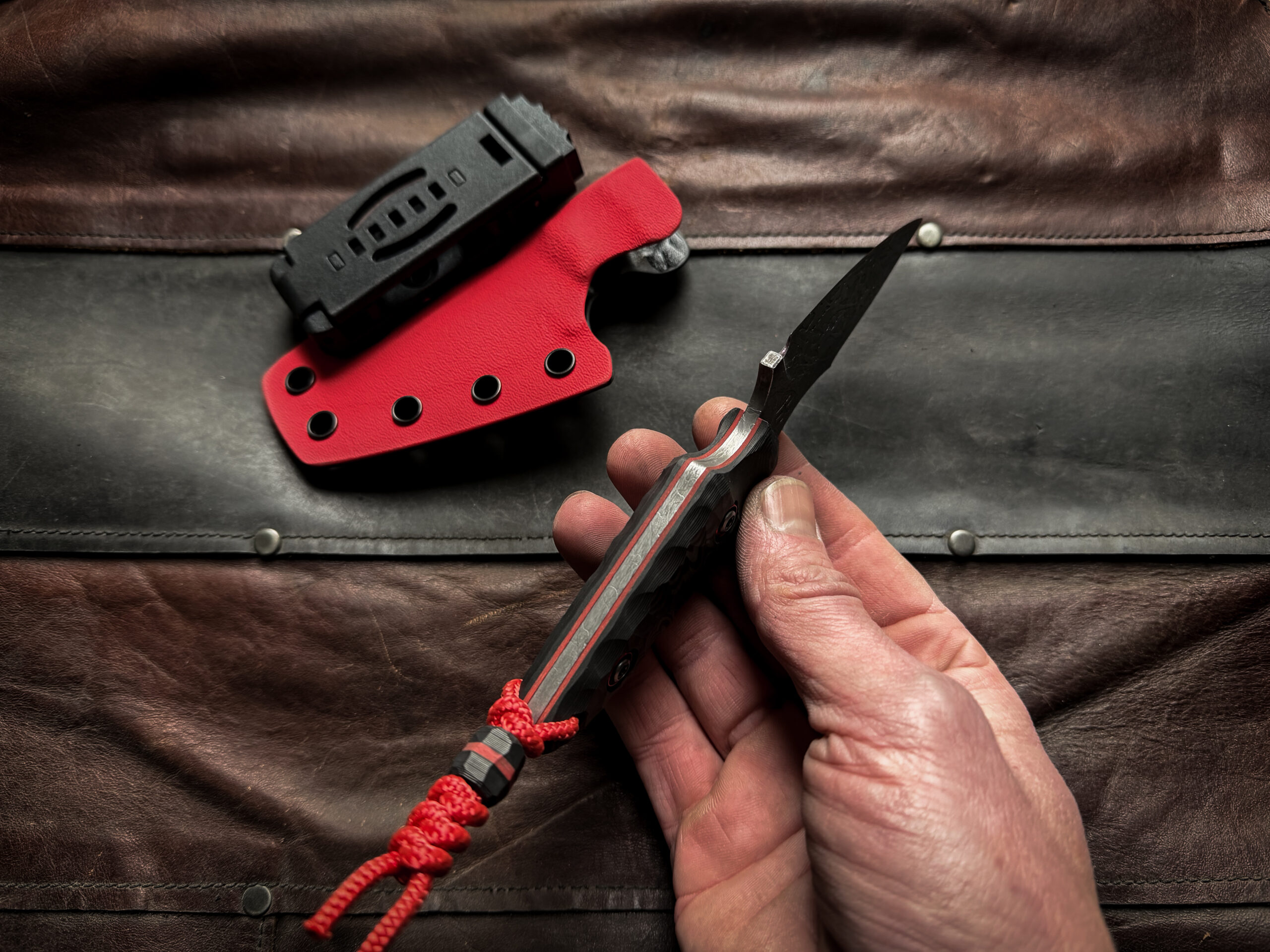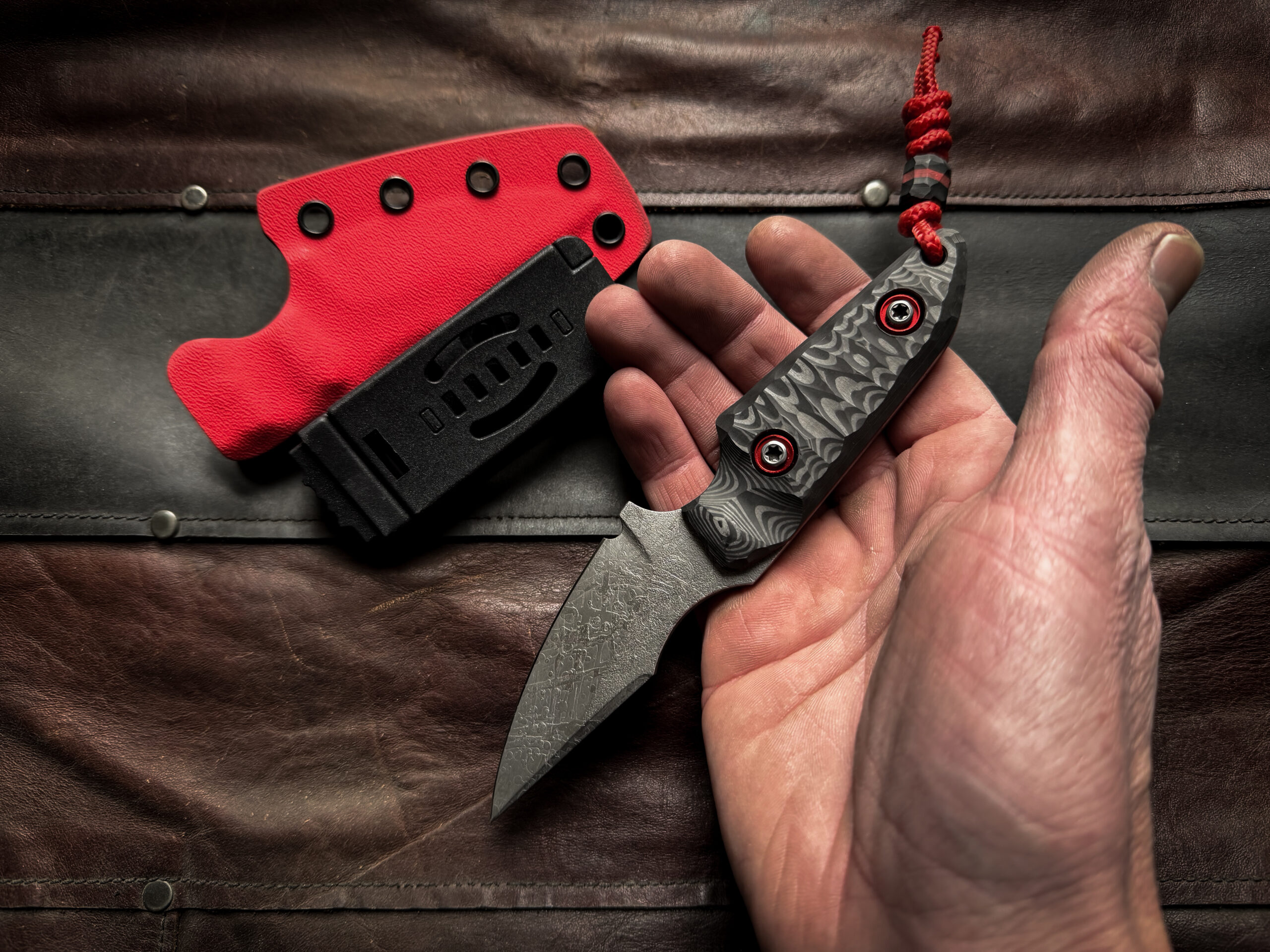 Two tone Kydex sheath (Red/Carbon) , TekLok, vertical or horizontal carry