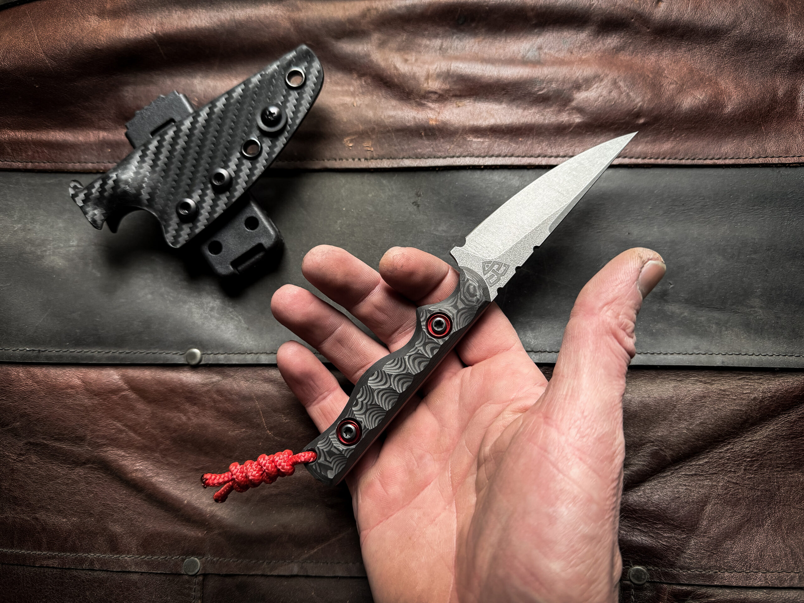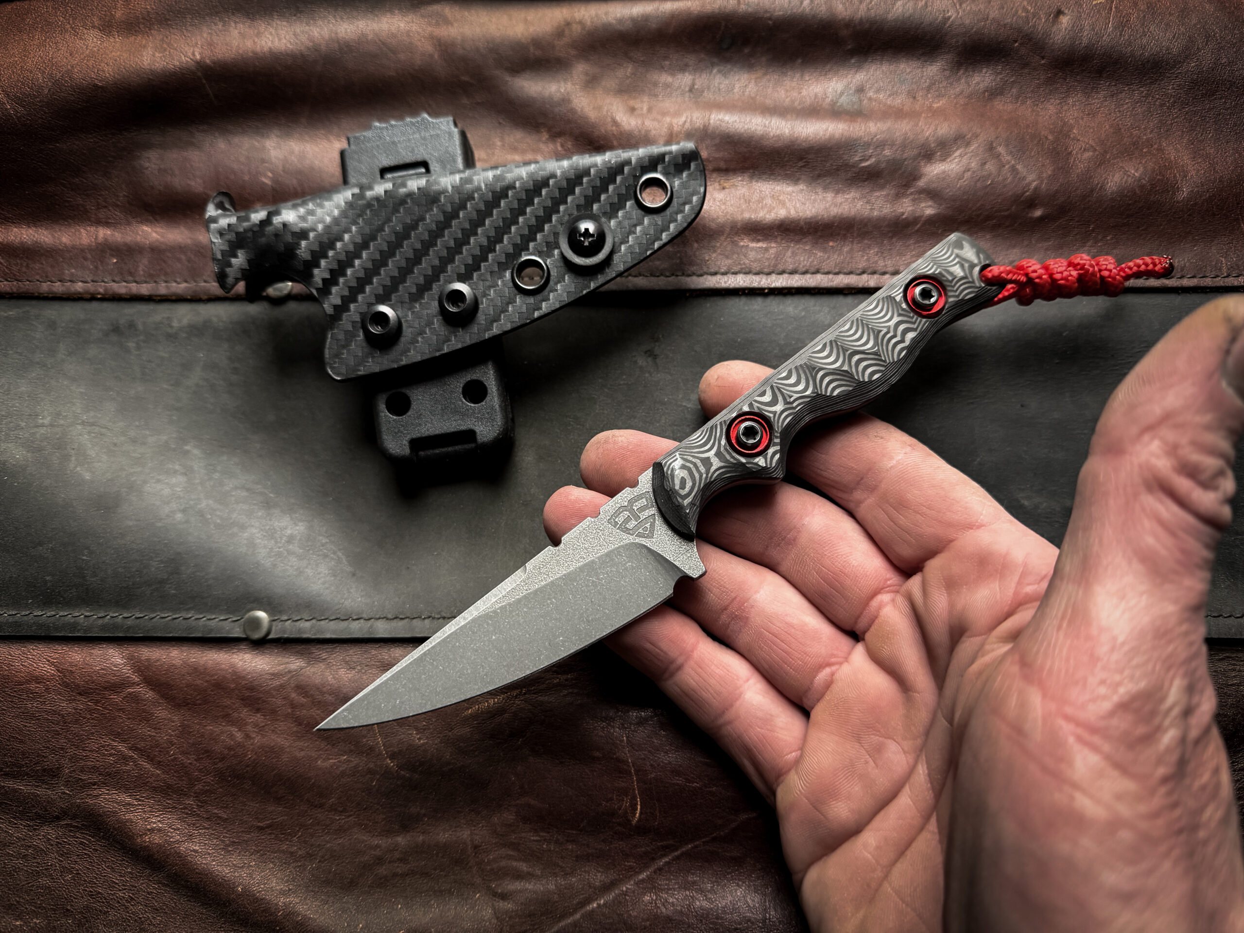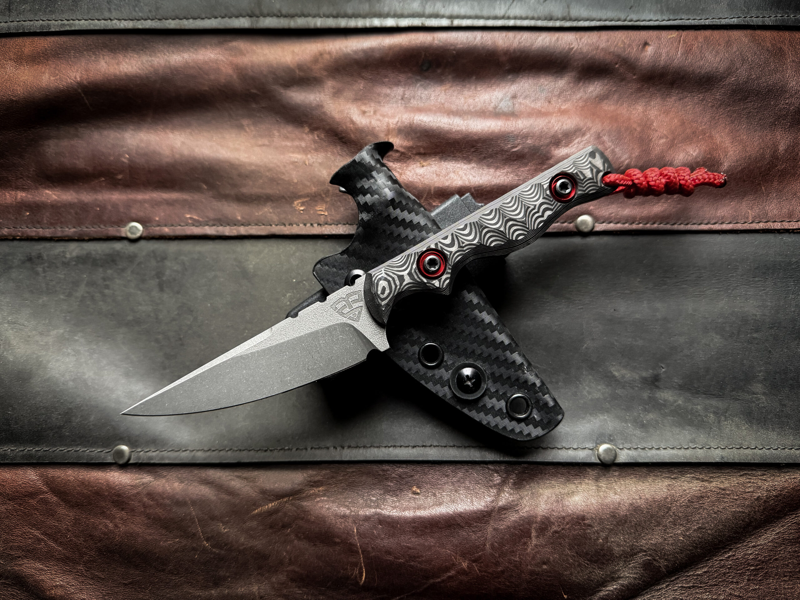 Red G10 liners, 3K Twill wave Carbon Fiber . Stainless steel screws
