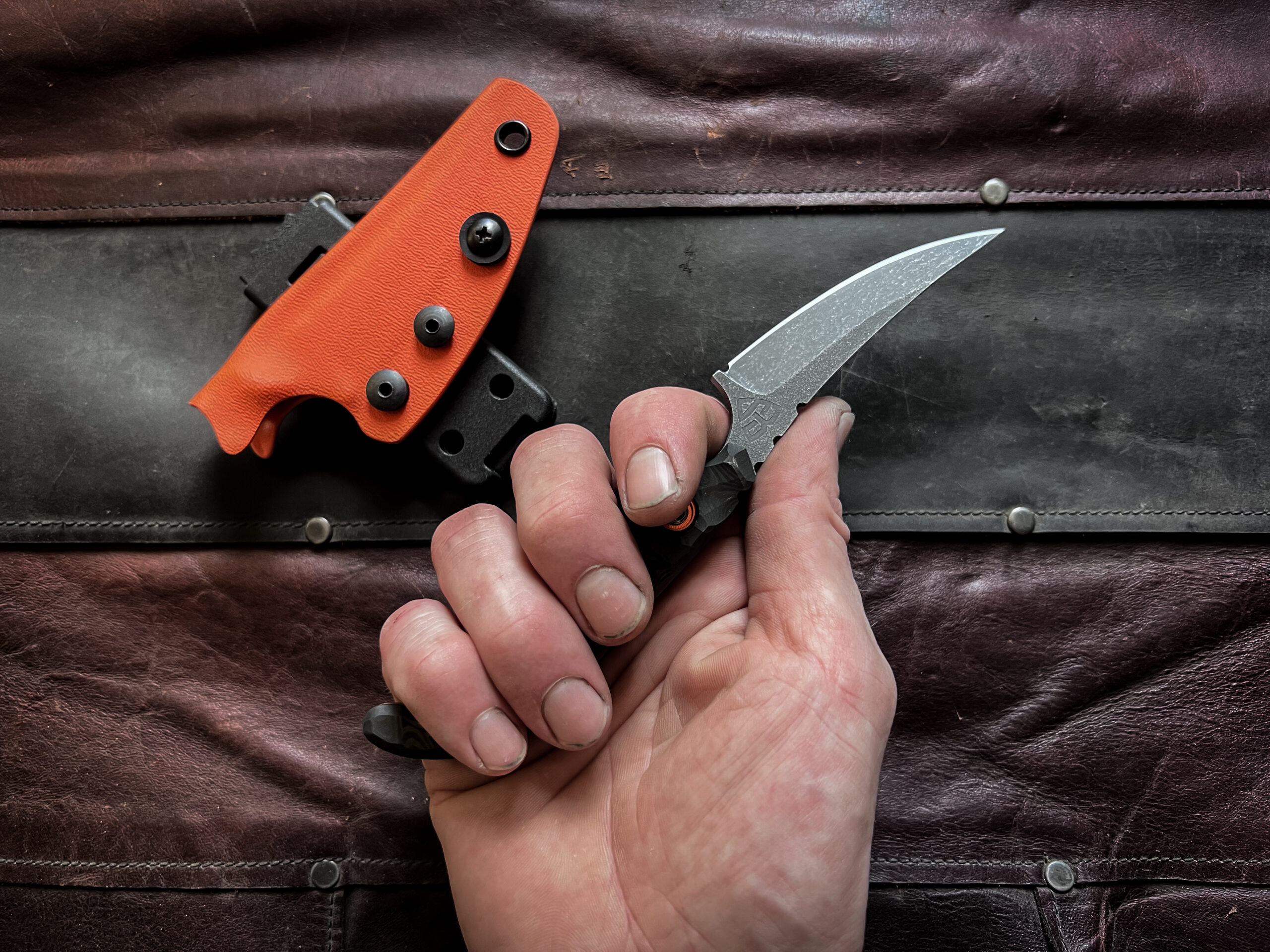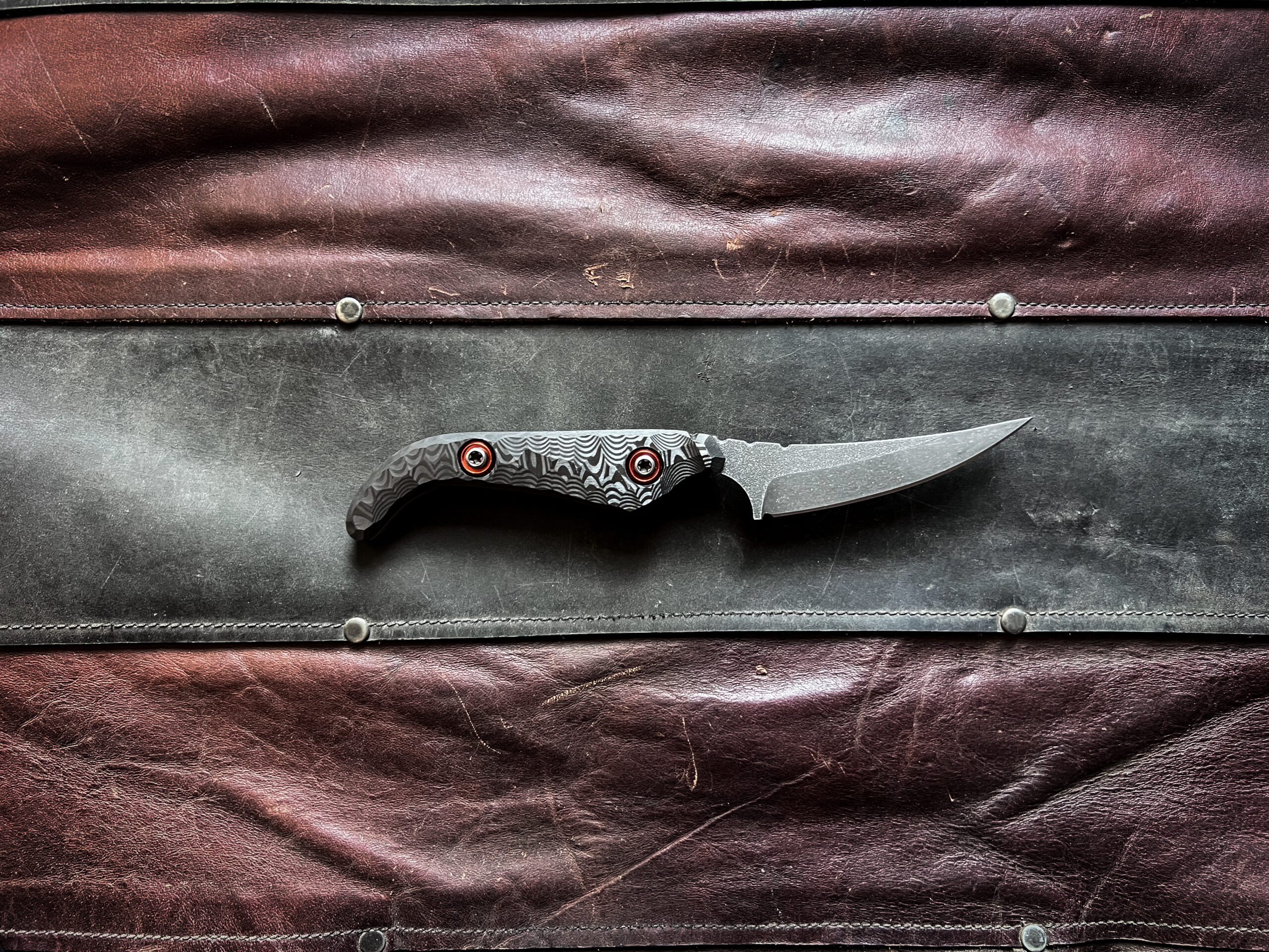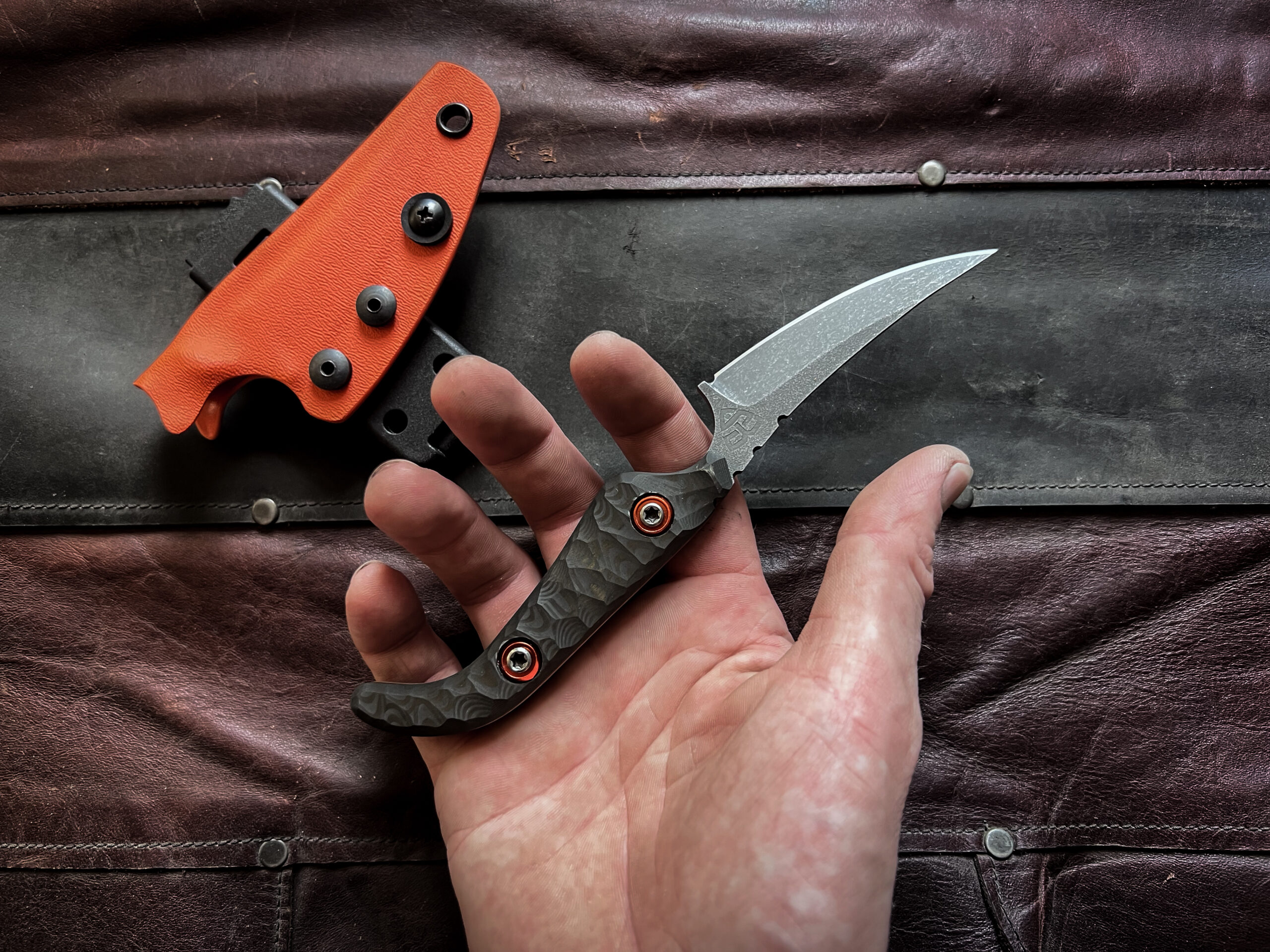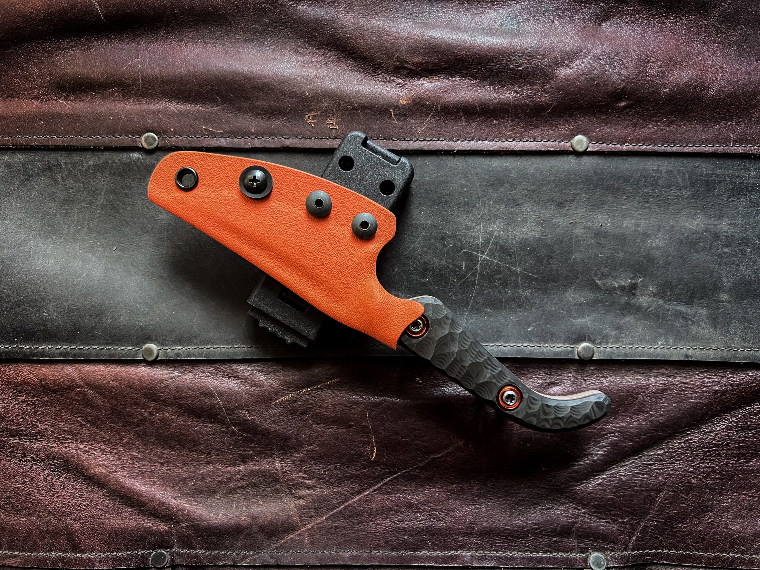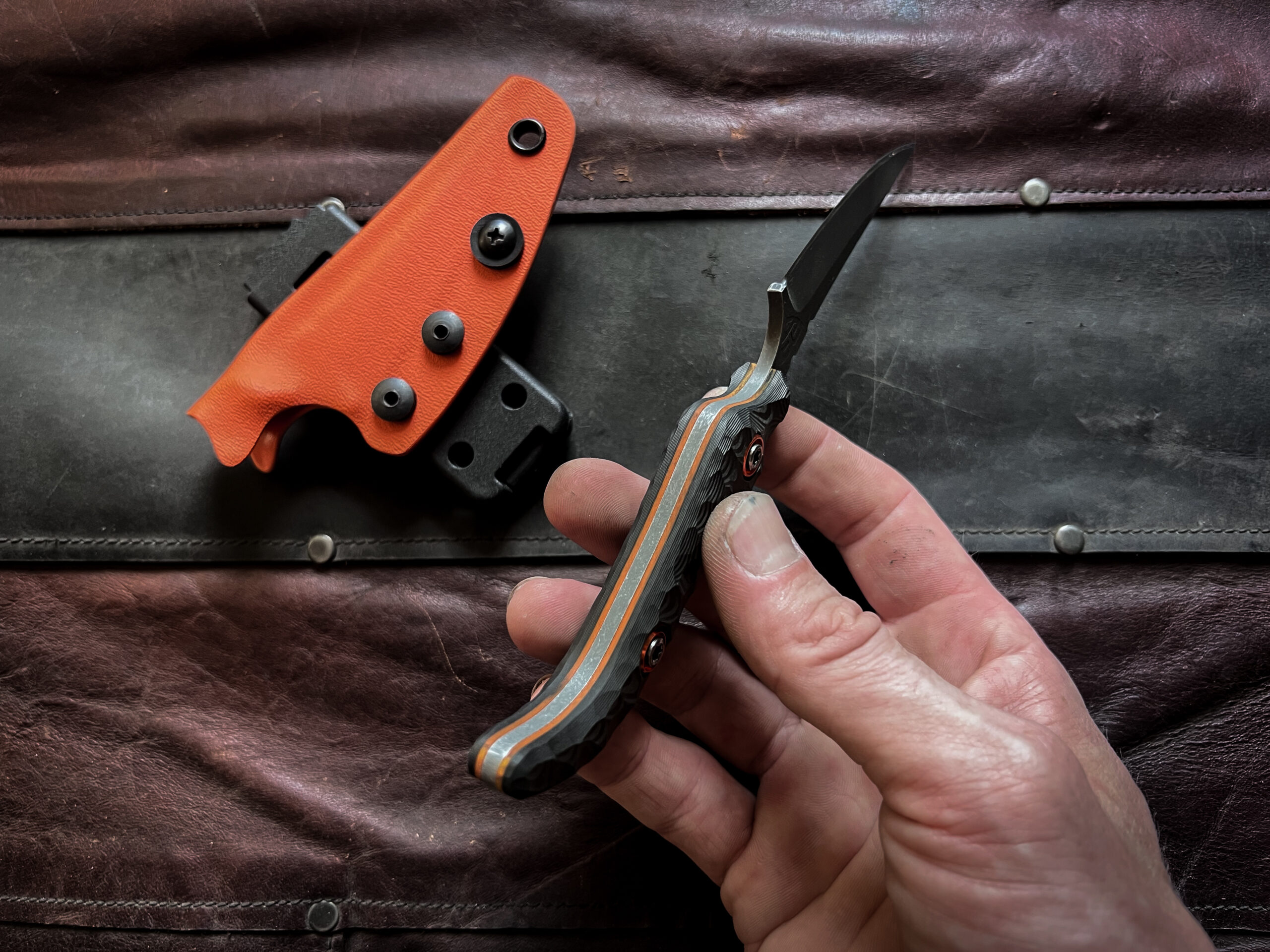 Orange G10 liners, 3K Twill wave Carbon fiber. Stainless steel screws with Orange washers