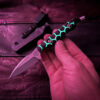 Black G10 liners, Carbon fiber with Glow in dark honeycomb pattern . Stainless steel screws